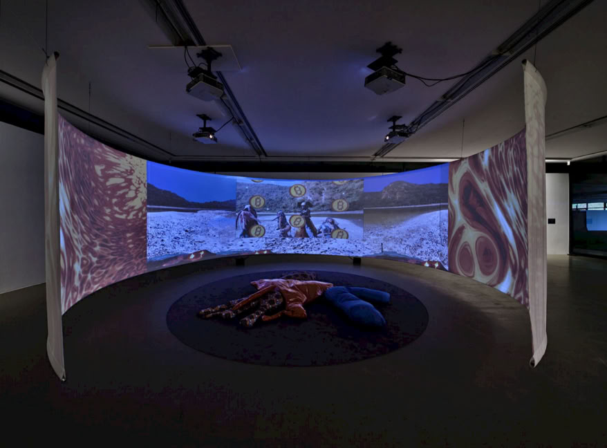 Ehrenstein teamed up with austrian artist Sunny Pfalzer and the San Salvador based artists Lucy Tomasino and Alexa Evangelista, as well as the web3 researcher Josh Davila. Cripto Sirenas is collaborative sci-fi fable and multi-media worldbuilding venture centered around a collaborative 360° video work and extending through installation, sculptures and mixed-media photographic works. The cycle speculates on tech-solutionism, totalitarian algorithms, and their impact on our bodies through an eco- or hydro-feminist lens, rethinking crypto-colonialist extractivism through the interconnectedness of bodies of water.